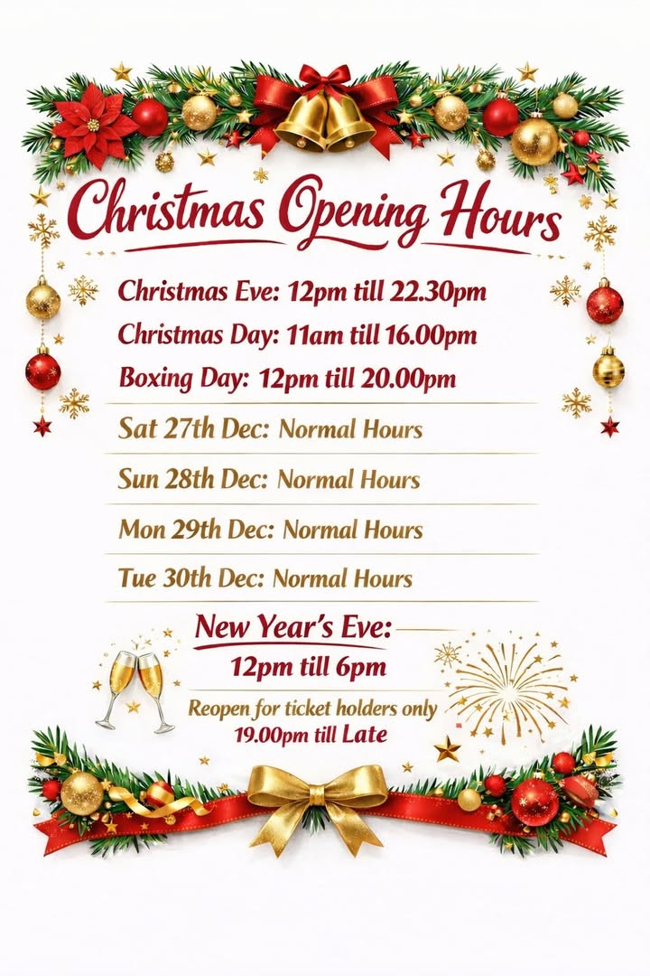 We’ll be shaking up festive cocktails, pouring your favourite pints, and keeping the good times rolling all night long. So, dust off those Christmas jumpers, gather your crew and let’s make this a December to remember.